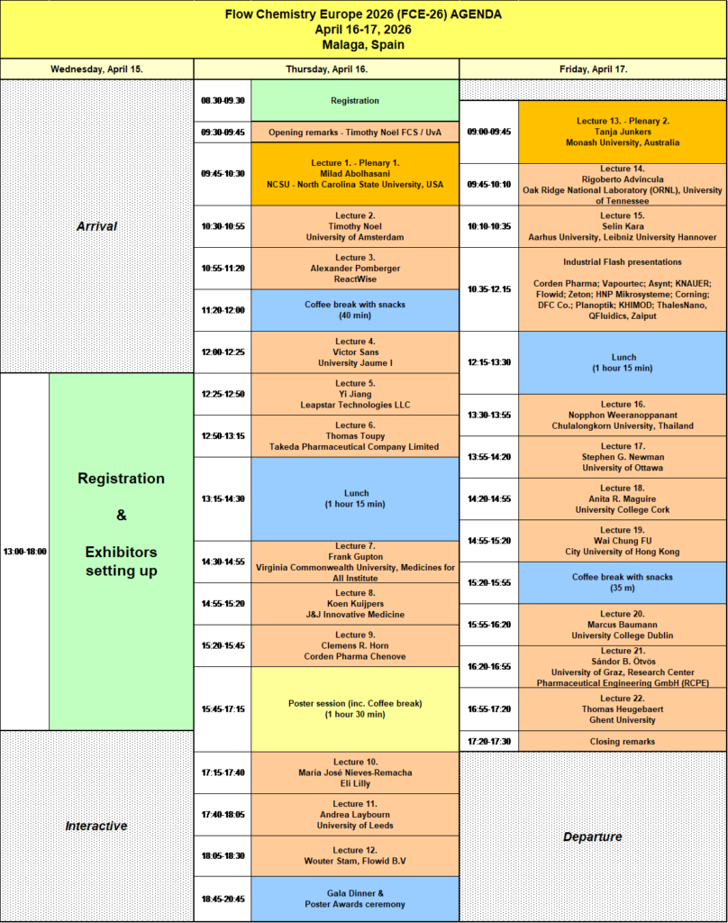 | 10.55-11.20 | L3 – Alexander Pomberger, ReactWise, United Kingdom Title: Data-Driven Flow Chemistry for Accelerated Process Optimization |