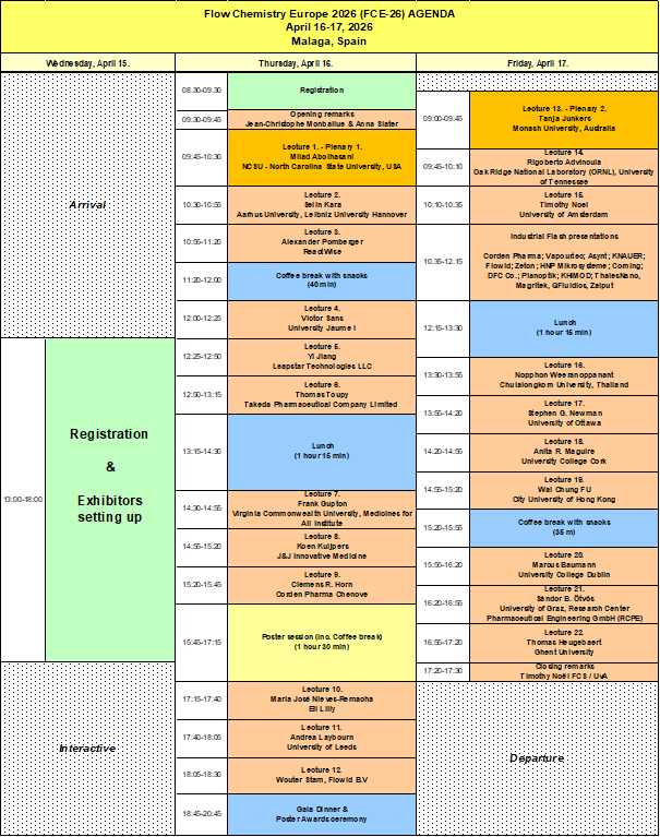 | 17:20-17:30 | Closing Remarks by Timothy Noël – Flow Chemistry Society, Switzerland |